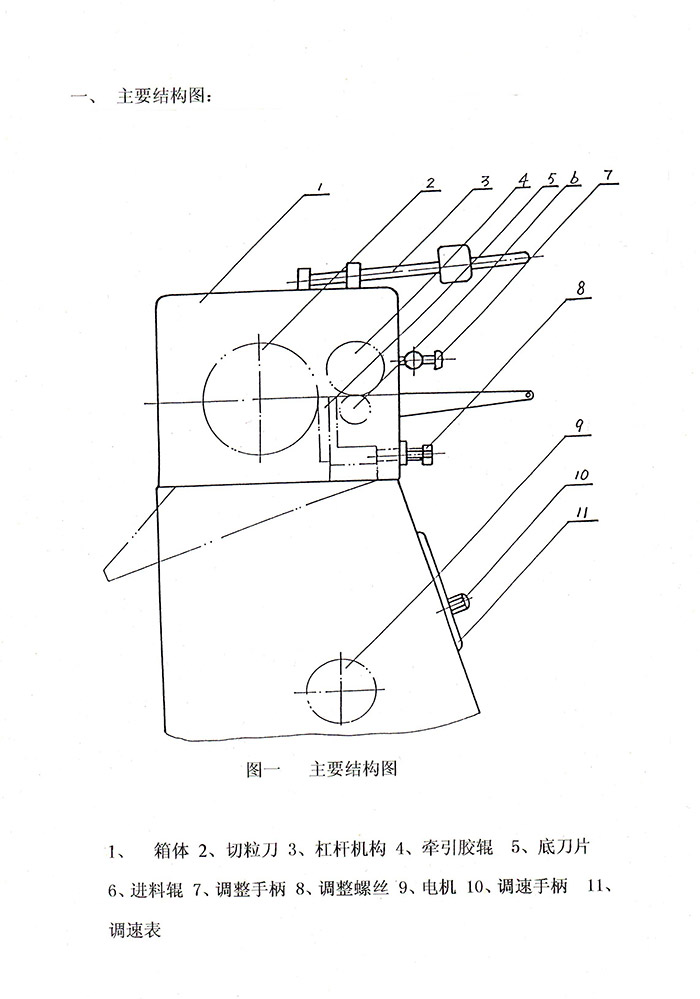 5.調(diào)整螺絲(8)用來調(diào)整底刀片(5)與切粒刀(2)的間隙(在0.06~0.12范圍內(nèi)),共有四個調(diào)整螺絲,其中中間兩個往外拉,兩邊兩個往里推。